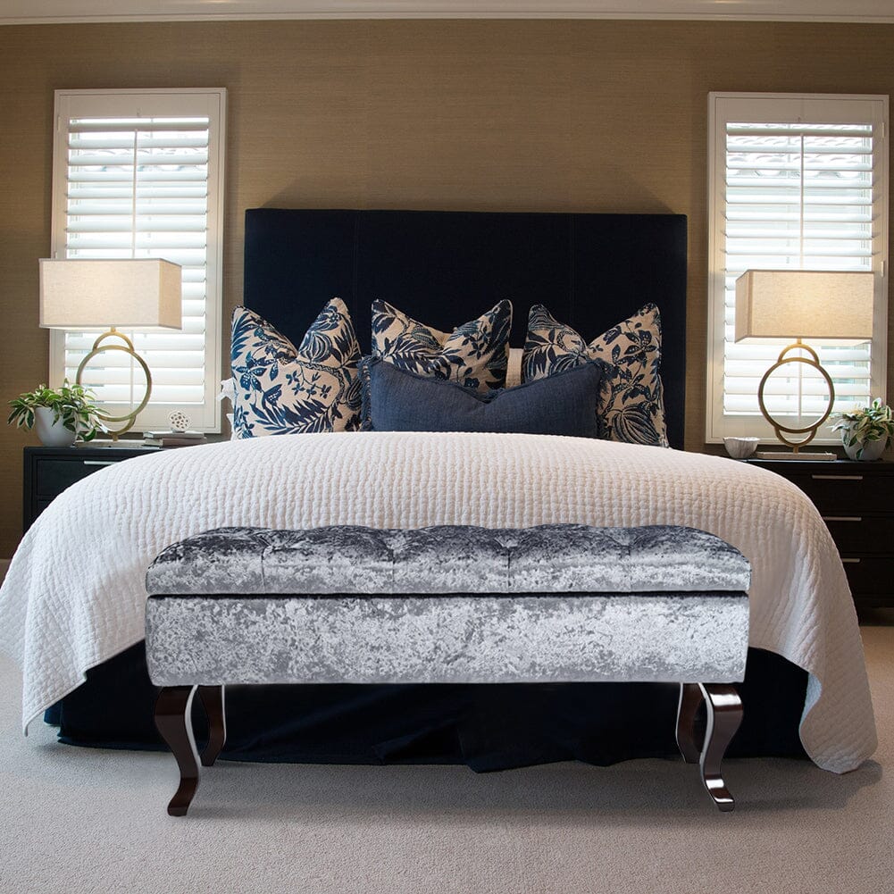100cm Wide Grey Velvet Upholstery Storage Bench Footstool