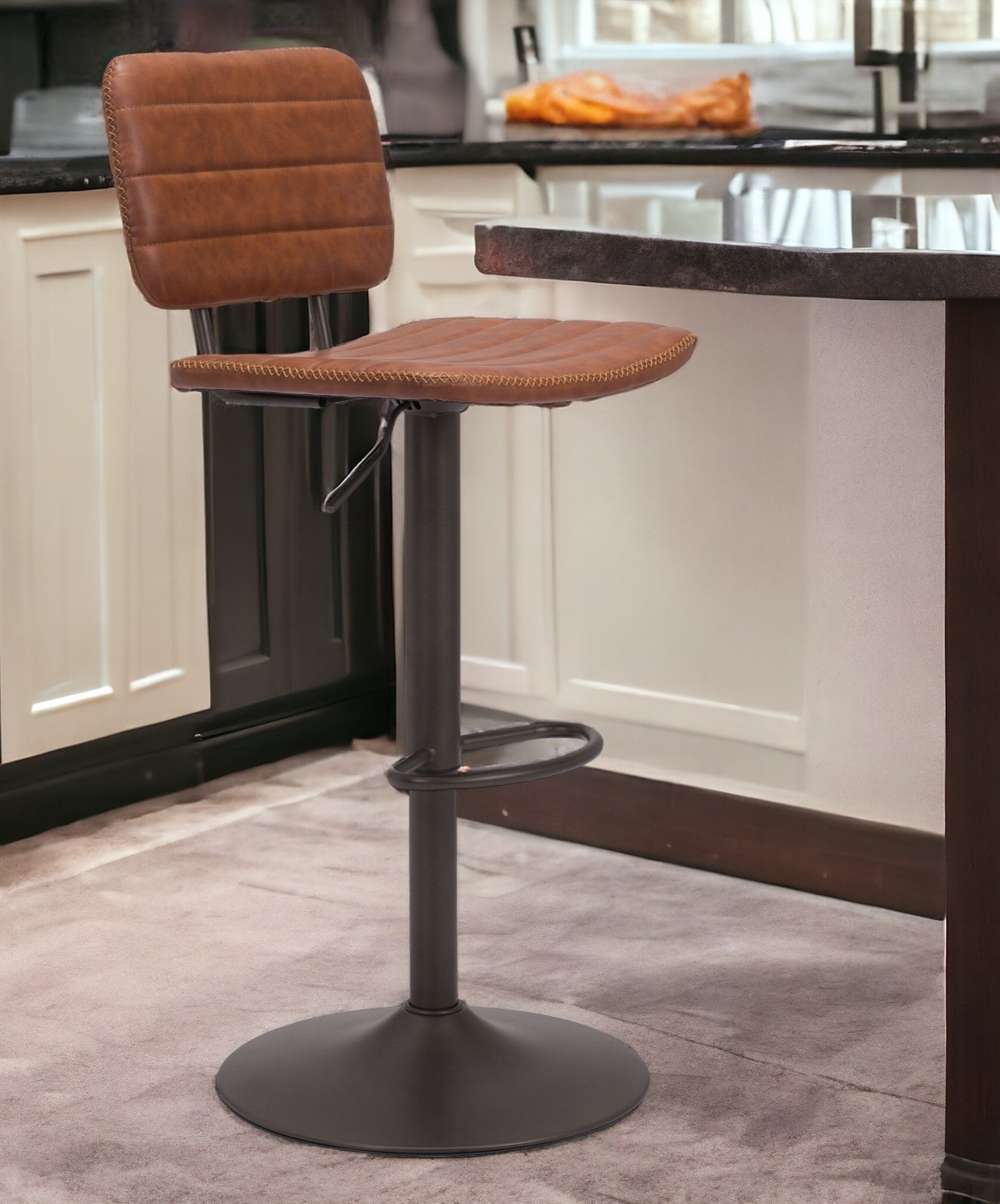 24" Brown And Black Steel Swivel Low Back Counter Height Bar Chair
