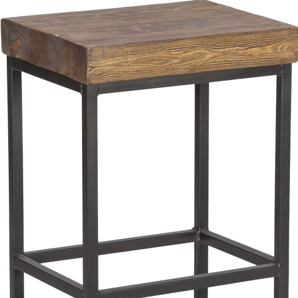 24" Wood Brown Iron Backless Counter Height Bar Chair