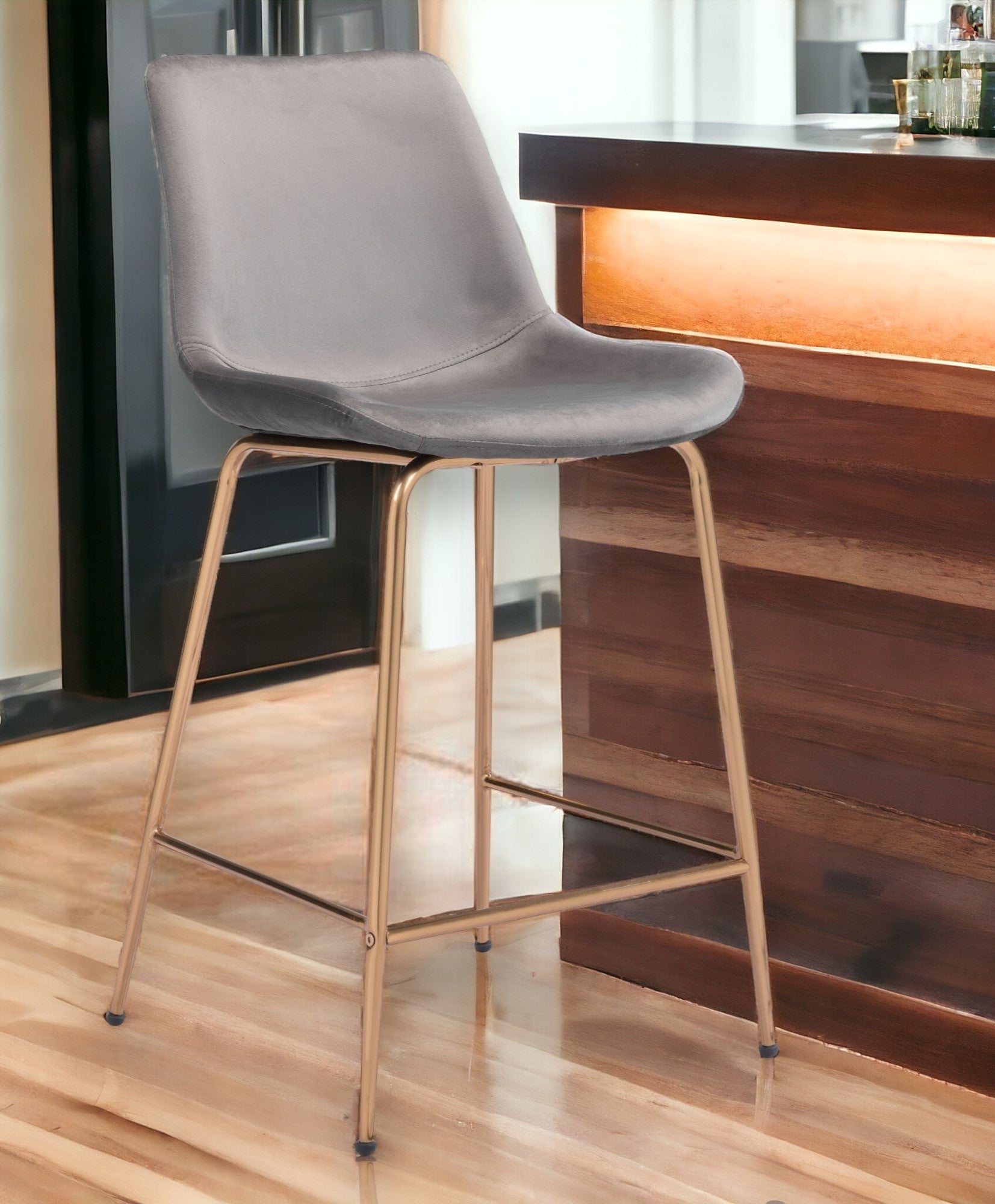 26" Gray And Copper Steel Low Back Counter Height Bar Chair