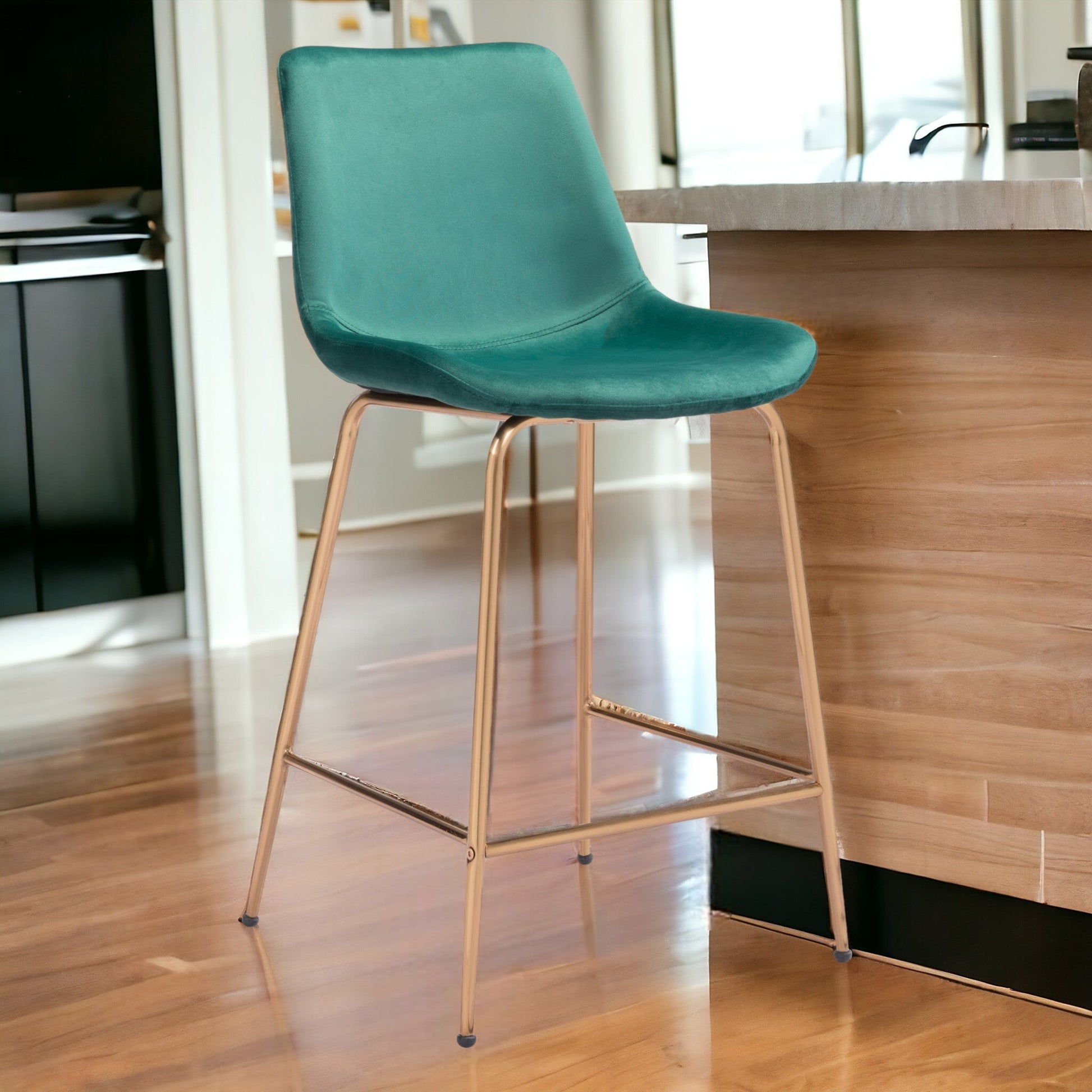 26" Green And Copper Steel Low Back Counter Height Bar Chair