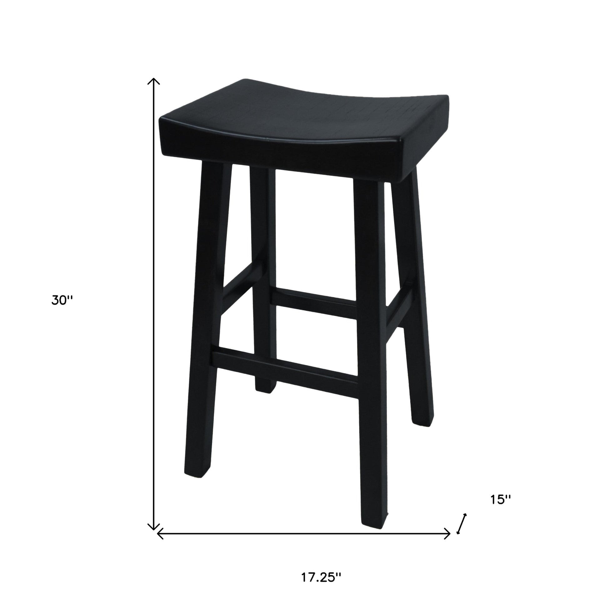 This 30" black backless bar height chair with footrest will be the perfect way to add some cool design and utility to your space similar to what you find in your favorite cafes or pubs. The base of this stool is made from solid wood in a black, that matches the solid wood, also in black. A backless mixed with a rectangle shaped seat makes this chair both comfortable and fashionable. Designed with a footrest for comfort and convenience. 30" H x 17.25" W x 15" D