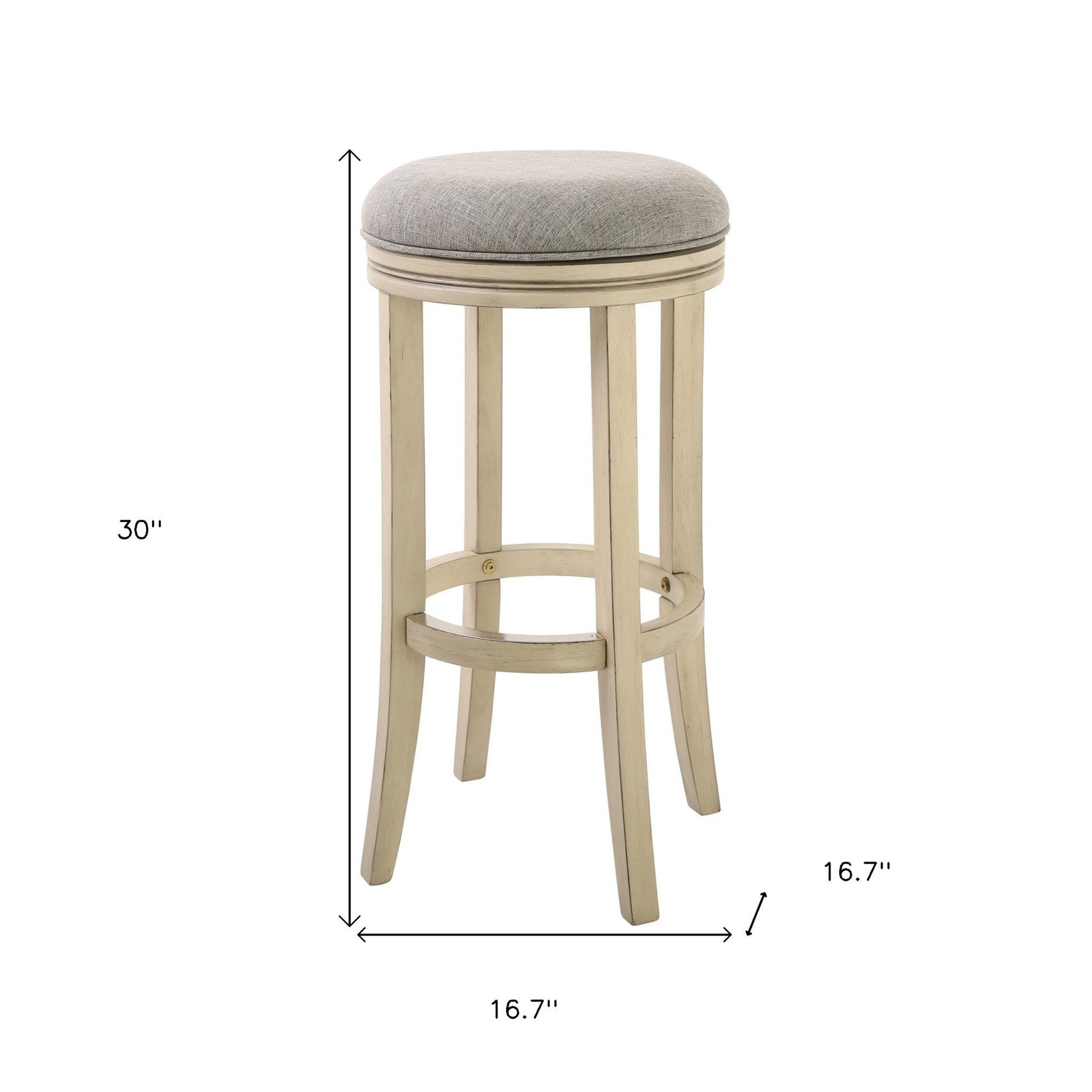 30" Gray And Ivory Solid Wood Swivel Backless Bar Height Bar Chair
