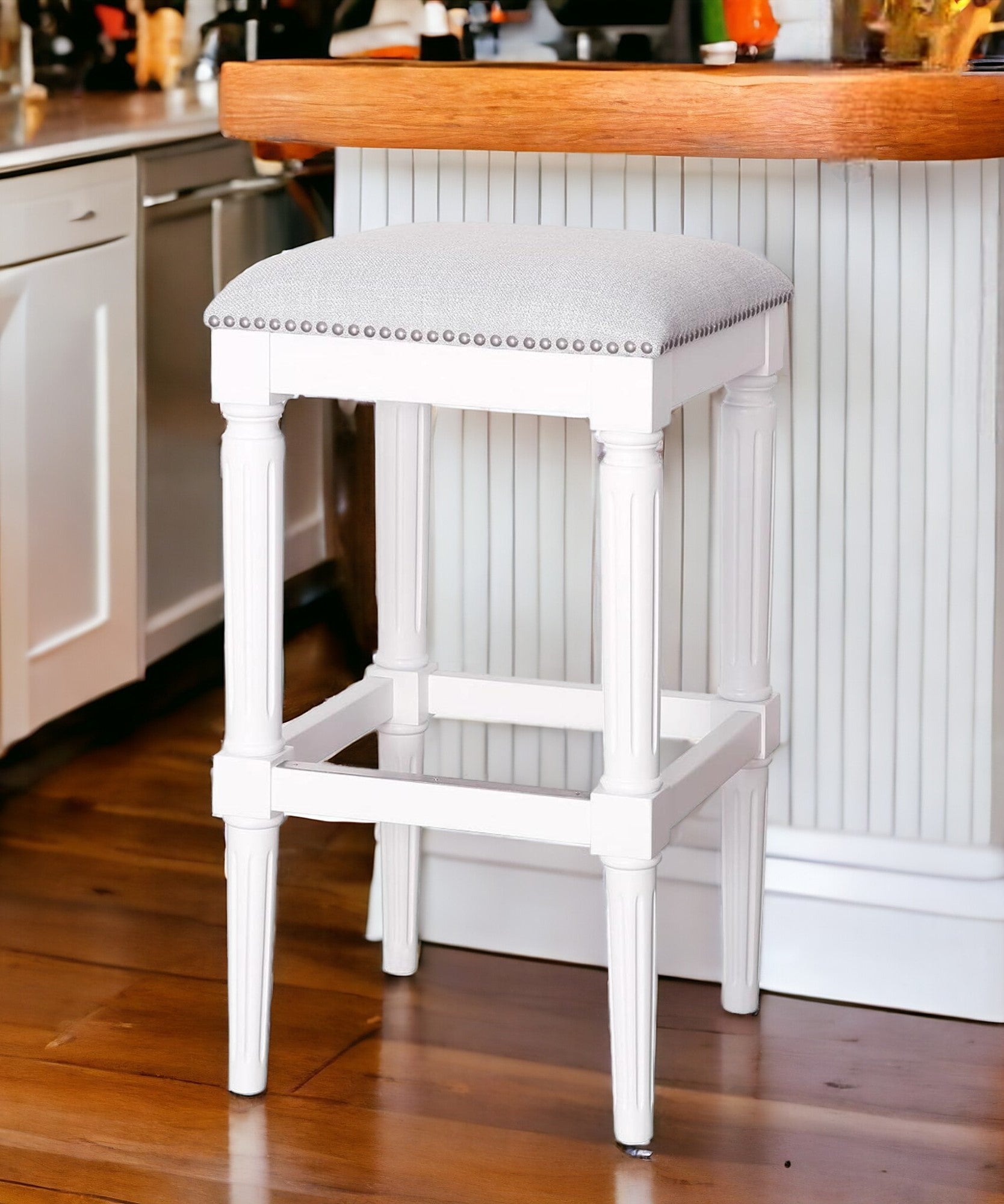 31" Light Gray And White Solid Wood Backless Bar Height Bar Chair