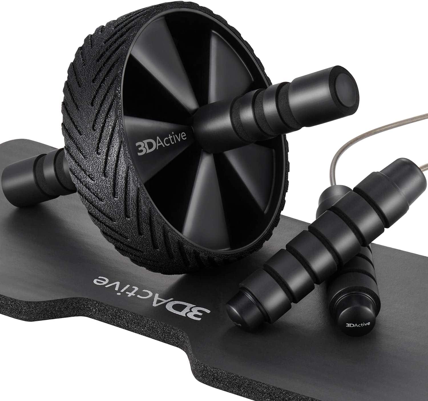 3Dactive Ab Roller Wheel with Jump Rope and Knee Mat. Home Gym Exercise Equipment for Abs Workout, Core Training and Cardio Workouts.