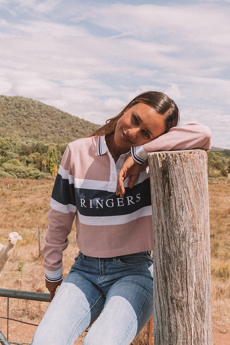 The perfect trans-seasonal item, one you didn't know you needed until now. Alberta is our cropped-fit rugby jersey, perfect to throw on with a pair of high-waisted Penny jeans. This rugby jersey is made from 100% premium cotton rugby knit which is known for its soft and breathable nature, ensuring a comfortable feel against the skin. It features an engineered stripe at the collar and cuffs along with a yarn-dyed stripe across the body and sleeves. The rib detailing adds a subtle texture to the garment while providing a snug fit that will keep you warm and cozy all day long.