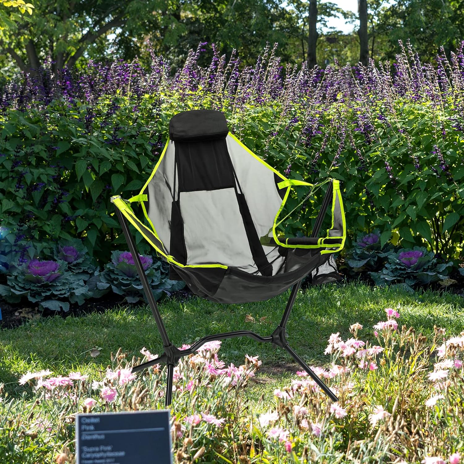 ALIMORDEN Oversize Outdoor Folding Chair Camping Chair Equipment Lounge Chair,Portable, Ultralight Aluminum Rocking Chair, Comfortable Backrest Outdoor Hammock Lounger with Cup Bag,Fluorescent
