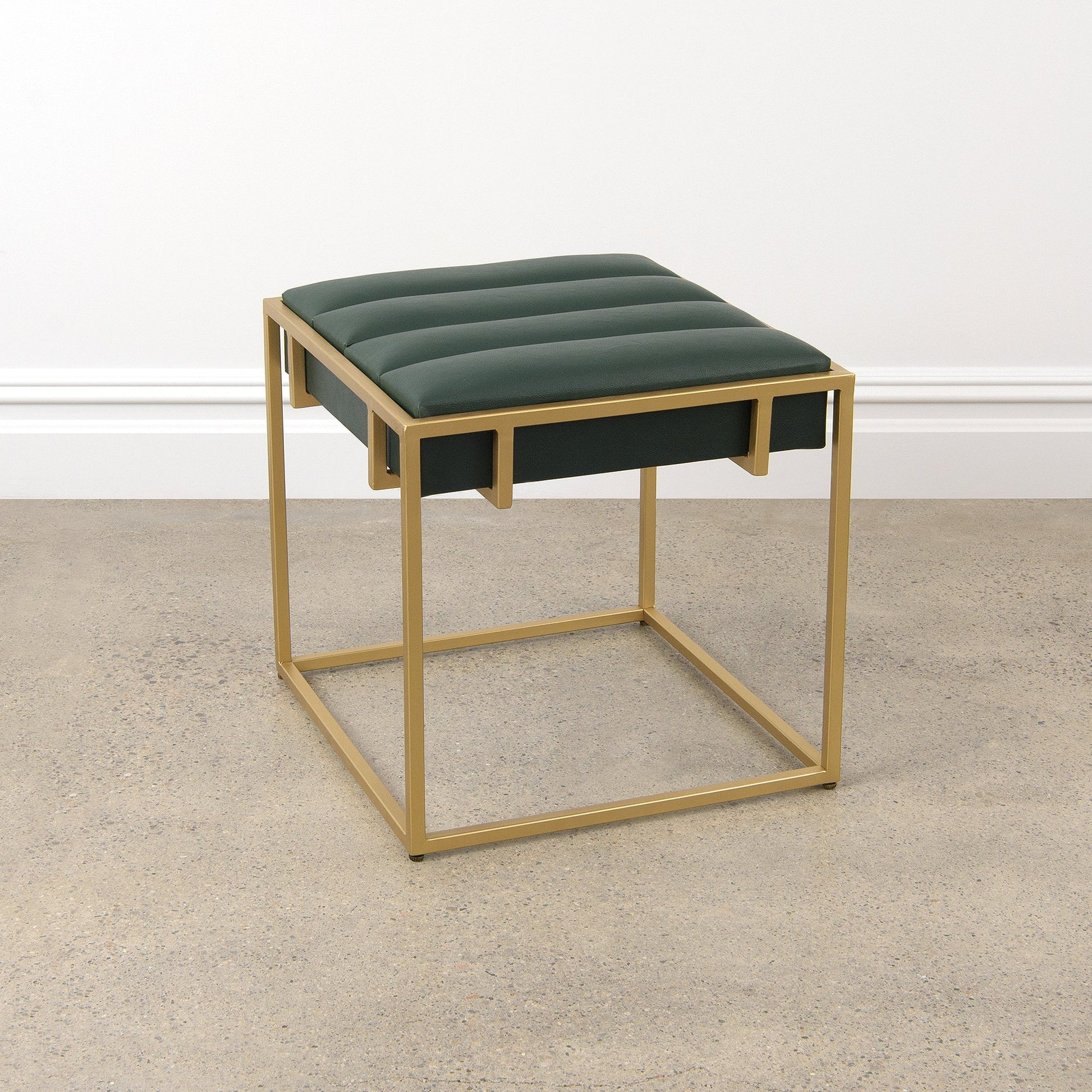 Posh meets practicality in this sophisticated Annabelle Leather Stool. A ribbed genuine leather cushion tops a minimalist gold-finished geometric base to create a simple yet striking silhouette. This versatile piece provides comfortable and classy extra seating under a window, at the foot of a bed, next to a sofa in the living room, or in an entryway. It is ideally suited for modern glam, contemporary, or boho interiors.