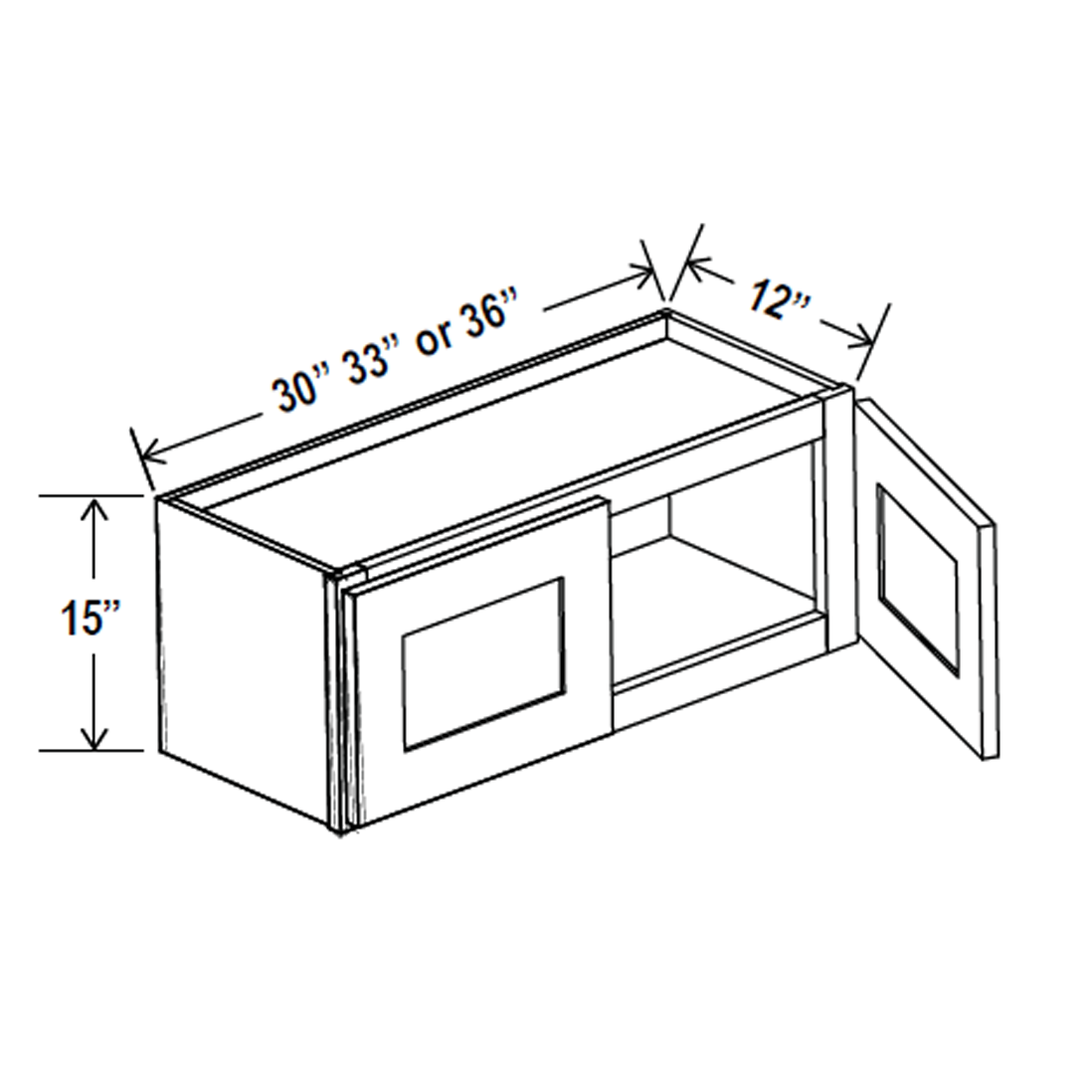 Aria Shaker White - Wall Cabinet - 33"W x 15"H x 12"D - 2DThis cabinet line offers the finest quality cabinets at the lowest possible prices. Door Construction is of Solid Birch Frame & MDF Center; The Box Construction is Solid Wood Frame Plywood Box. Features: