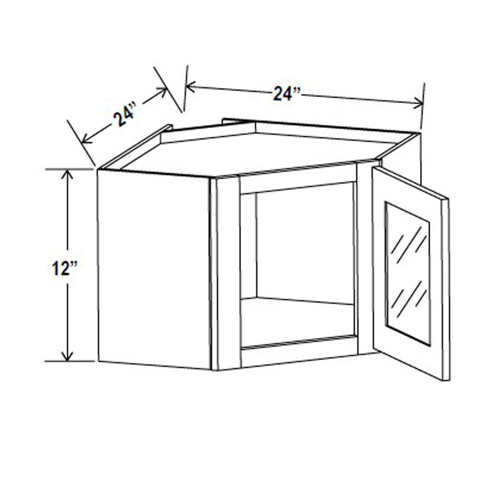 Wall Diagonal Glass Door Corner Cabinet - 24W x 12H x 12D - 1D -2S - Aria White Shaker