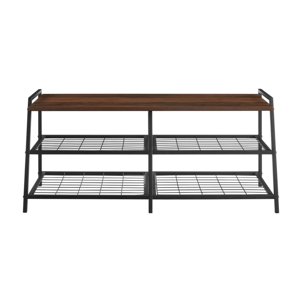 Arlo 42" Industrial Metal and Wood Entry Bench with Shoe Rack - Dark Walnut