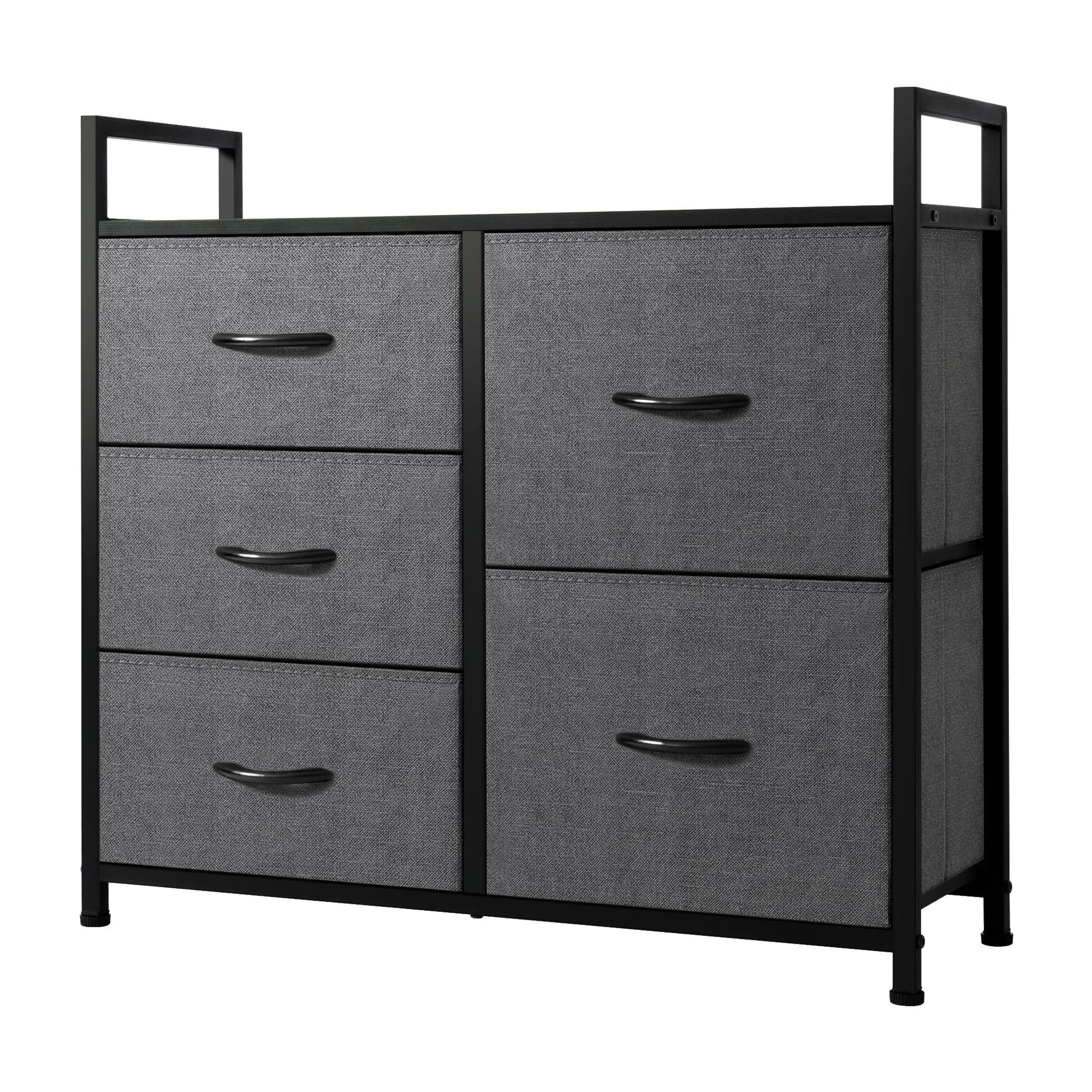 Wide Dresser Storage Tower with Sturdy Steel Frame, Wood Top, 5 Drawers of Easy-Pull