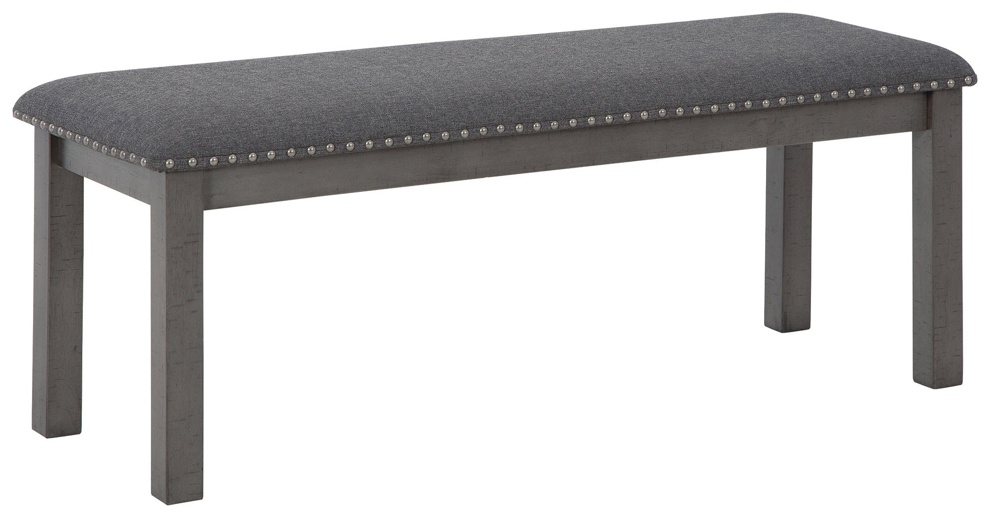 Introducing our captivating dining bench that flawlessly embraces the gray trend. With a sophisticated smoky gray finish, it exudes modern elegance. The cushioned seat is adorned with gray textured upholstery and tasteful nailhead trim, providing both comfort and style. Designed with a touch of distressing, this bench seamlessly integrates with your contemporary farmhouse decor, creating a harmonious blend of classic and contemporary elements. Take your dining experience to the next level with this remarkable piece.