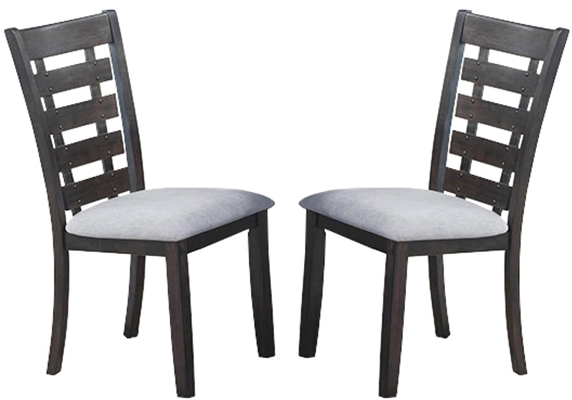 Bailey Transitional Style Dining Chair in Gray finish Wood, 39 x 19 x 24, 36lbs. Cosmos Furniture's Bailey transitional style Dining Chair in weathered gray finish wood comes as a Set of Two (2) Chairs. The Bailey collection offers a casual look, versatility and sleek style that enhances any dining room. High density foam on chair seat in contrasting color with ladderback and bolt head details gives comfort and style to this piece. The set is made from wood and inlays, adding extra stability and durability to your dining experience. Bailey dining chairs are a great addition to enjoy quality time with family and friends. Sold in a set of 2. Matching Bailey Dining Table and more Bailey Chairs in (set of 2) are sold separately. - Transitional Style Dining Chair - In Weathered Gray finish Wood - Light Gray padded seats - Ladderback - High density foam on chair seat - Curved back chairs - Sturdy - Matching Dining Table sold separately - Dining Chair - Sold in set of 2 per box - Must buy 2 Chairs - -