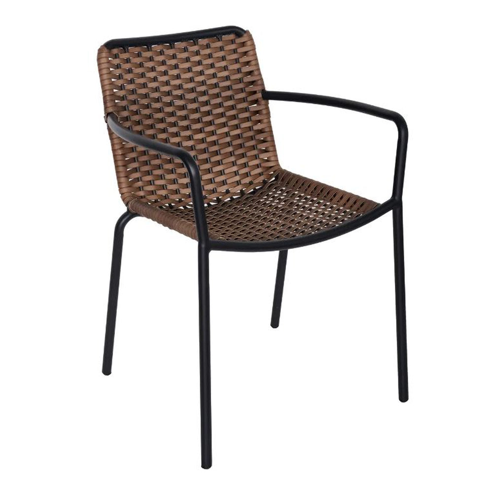 with durable woven synthetic rope seat and back. Available in stacking side and armchair, and non-stacking armless barstool. White or black frame.