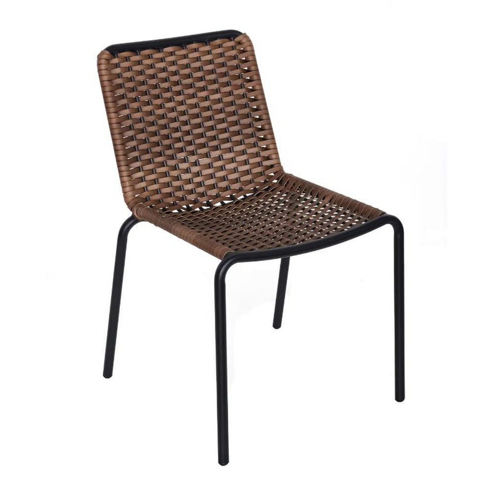 with durable woven synthetic rope seat and back. Available in stacking side and armchair, and non-stacking armless barstool. White or black frame.