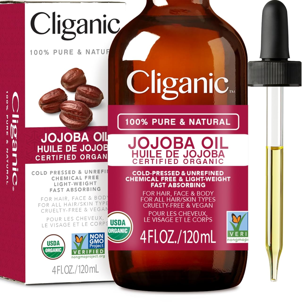 Cliganic Organic Jojoba Oil is 100% pure cold pressed, unrefined and all natural, making it the ultimate treatment for dry skin and hair. Often referred to as natureÕs moisturizer for its ability to mimic the skinÕs sebum, our virgin jojoba oil contains vitamins and minerals essential for healthy-looking skin and hair, including vitamin E, B-complex.