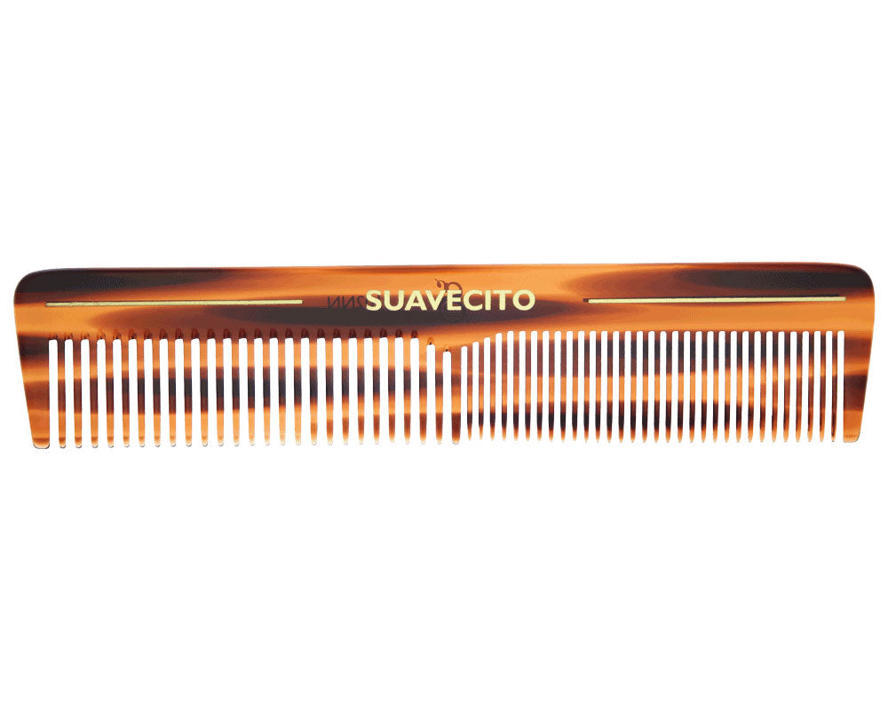 Enter the Deluxe Amber Comb from Suavecito. It styles your hair like nothing else can. This large dual sided comb makes styling your mop of hair effortless and quick. The gold logos against the deep amber colored comb will compliment your washroom in ways you never thought possible.