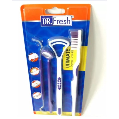 A complete set of dentist’s tools you can use in your own bathroom! The Ultimate Dental Care Kit comes with a dental stain eraser, floss pik, dental pik, dental mirror, tongue brush, and toothbrush.