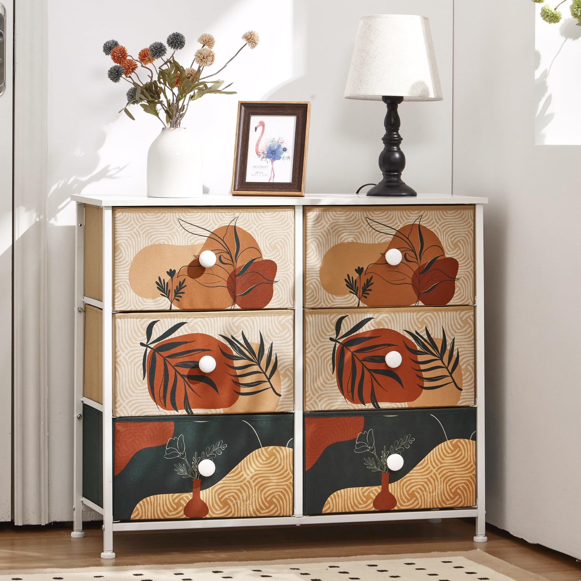 - DURABLE and HEALTHY MATERIALS The 6 drawer dressers & chests of drawers is made of sturdy metal frame + high-quality wooden tabletop + healthy fabric storage drawers. Smooth and detachable circular handle makes the organizer unit drawers more cute and beautiful. Dresser is very sturdy and durable. You don't have to worry about the safety of storing your clothes.