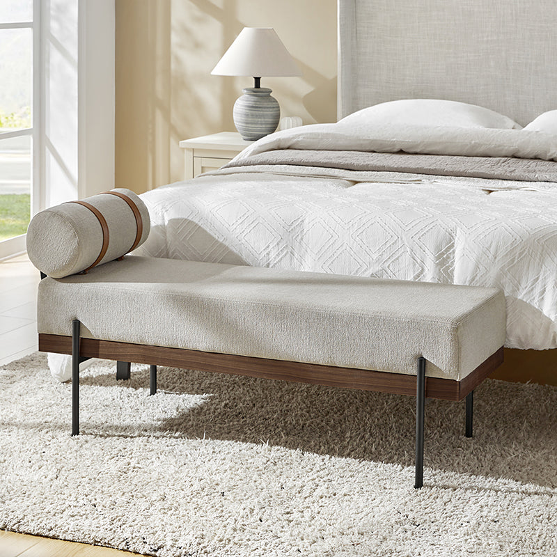 This modern industrial bench is probably the most convenient and flexible home decoration! This is a great addition and can provide a place at your entrance or the end of your bed, or even it can be a nice extra table or seat in the living room to welcome your guests. Wrapped in soft 100% polyester fabric, quite comfortable and inviting. With shiny gun-colored metal legs, it is exquisite and stylish. The industrial style bench features a streamlined rectangle with a cushioned top that's easy to use whether you're changing shoes or browsing the news. Meanwhile, the detachable pillow facilitates your rest. You can put this product in your living room, study, or office.