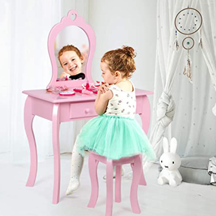Girls Princess Dressing Table & Stool with Mirror & Drawers | Kids Vanity Table | Pink | 3-8 Years