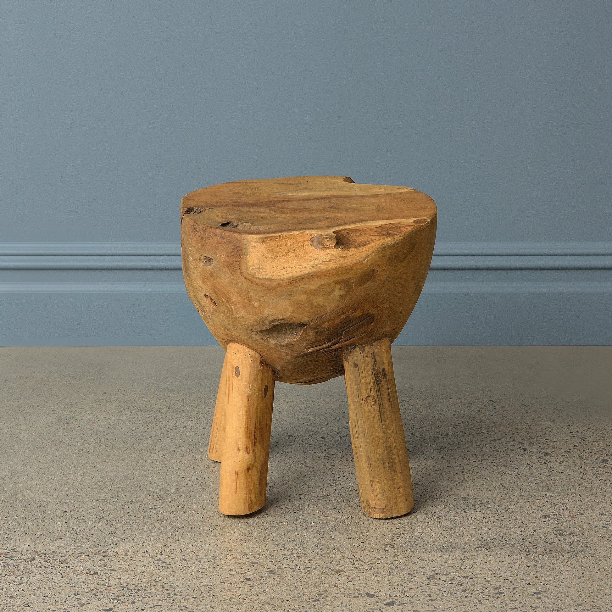 Bring the beauty and durability of teak into your home with this stunning Half Bowl Stool. This stool has a rough-hewn texture that highlights its natural composition and injects a warm, organic feel. With its one-of-a-kind visual appeal, it adds style wherever it is used as a stool, small table, or stand.