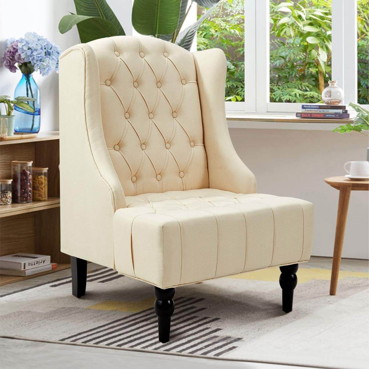 Wingback Chair: Our Homrest Tall Wingback Fabric Accent Chair in Creamy White will meet all your indoor furniture needs. This high-class lounge chair pairs perfectly with an ottoman and comes in a variety of colors to suit any style.