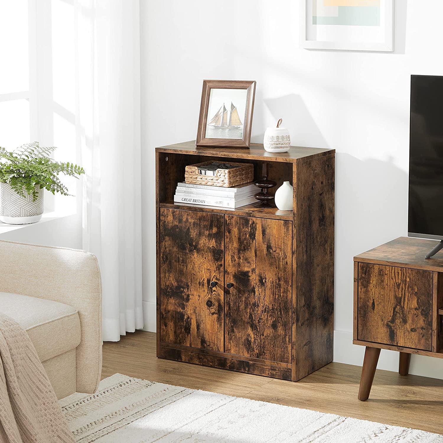 While the top surface, the spacious open compartment, and the cupboard with a 3-height adjustable shelf offer you plenty of storage room and the quality particleboard ensures durability, its warm rustic brown surface also brings a touch of charm to your space. With this floor cabinet from HWLEXTRA, you’ll get both style and storage you’ve dreamt of.