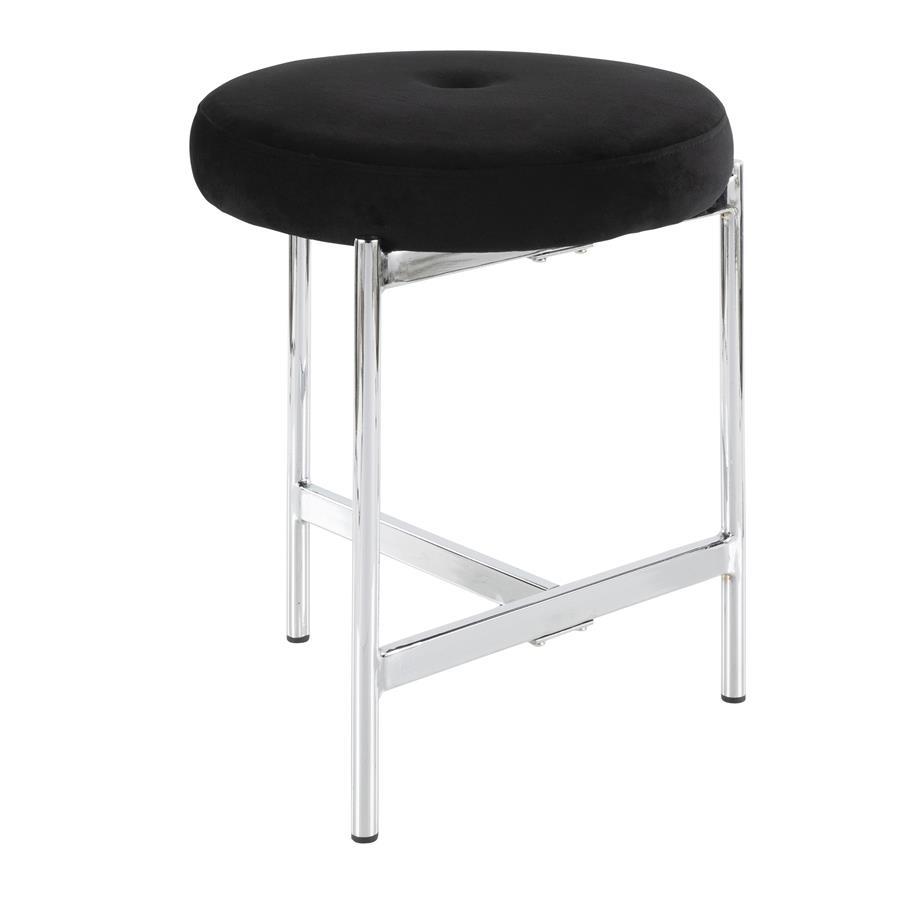Chloe Contemporary Vanity Stool in Chrome and Black Velvet by Lumisource.