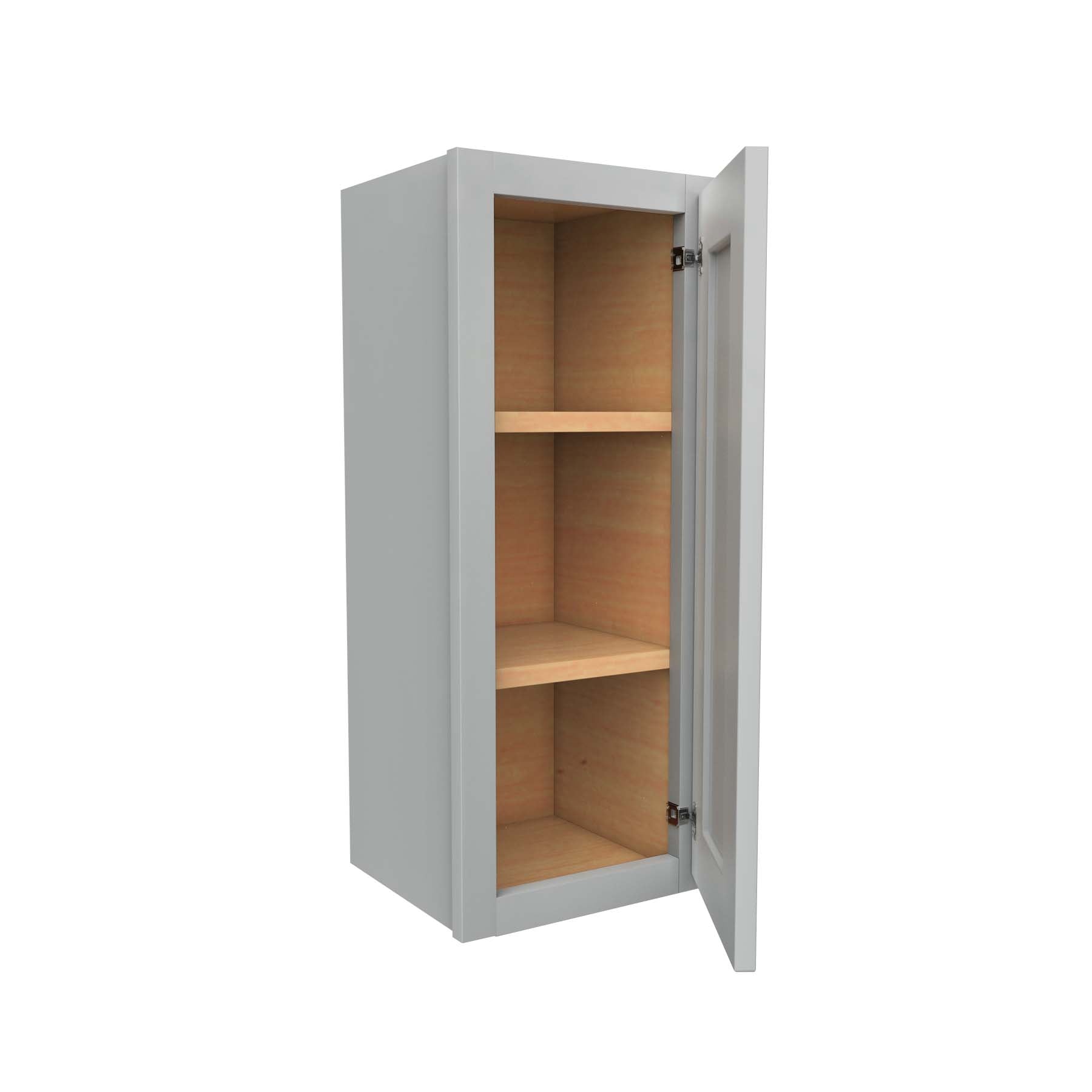 Luxor Misty Grey - Single Door Wall Cabinet | 12"W x 30"H x 12"DThe Luxor Collection is our partial overlay cabinet constructed from all plywood. All drawer boxes are made with dovetail construction and come with a slab drawer front and soft-close undermount glides. Features: