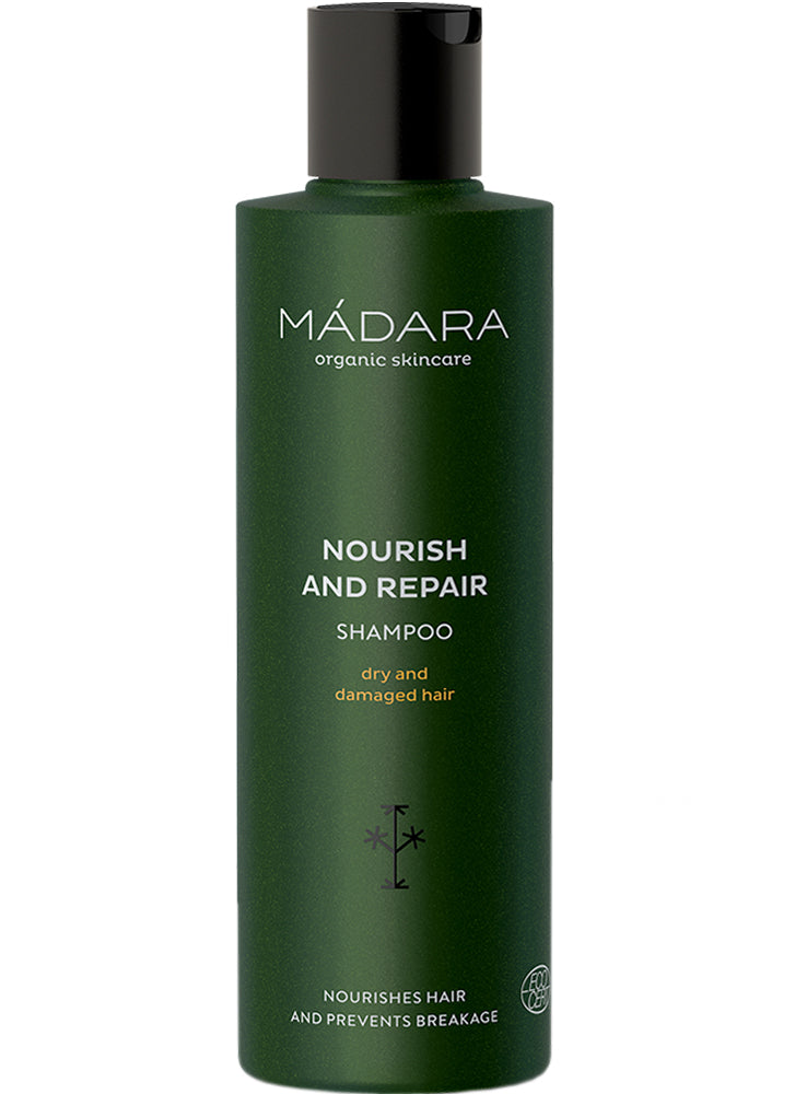 Massage Madara Nourish and Repair Shampoo onto wet hair. Lather and rinse. For best results use with Madara Nourish and Repair Conditioner.