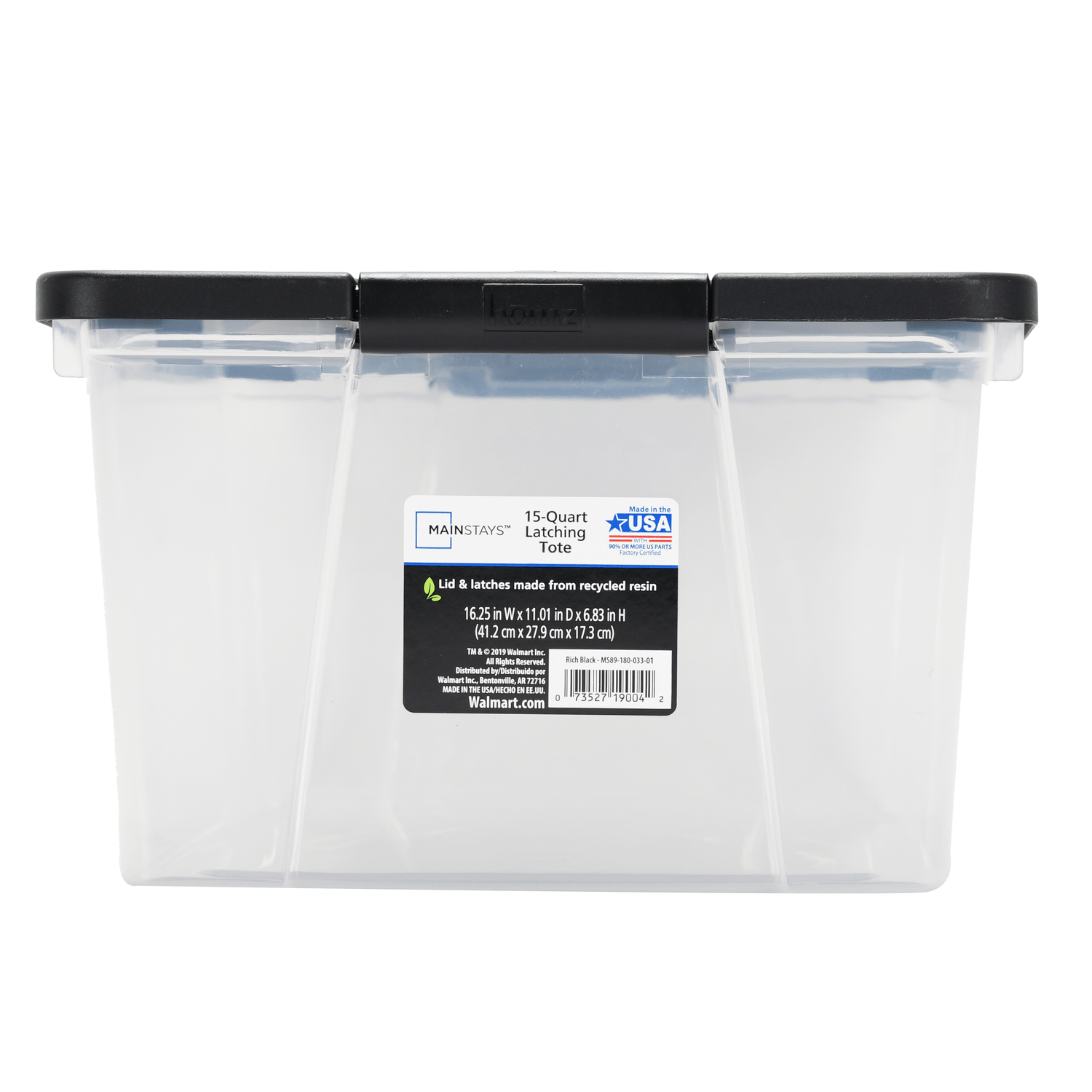 Mainstays 15 Quart Latching Clear Storage Container with Black Lid