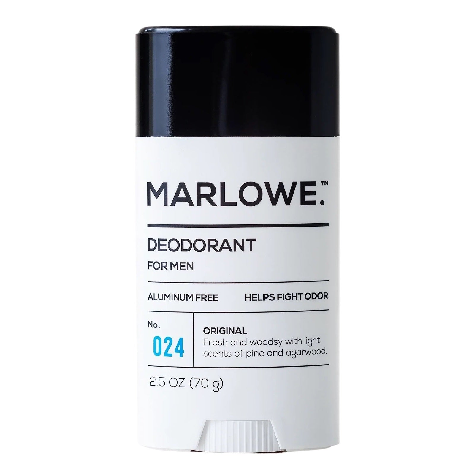 Marlowe's natural men's deodorant is packed with simple & effective ingredients to combat odor without aluminum or other harsh ingredients that are harmful for your body. Formulated with coconut oil, arrowroot, shea butter, jojoba esters, & probiotics for simple but effective performance. Everything you need, nothing you don't.