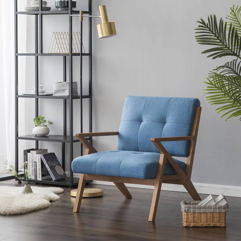 Mid-Century Modern Accent Armchair Solid Hardwood Upholstered Linen Lounge Chair, Light Blue