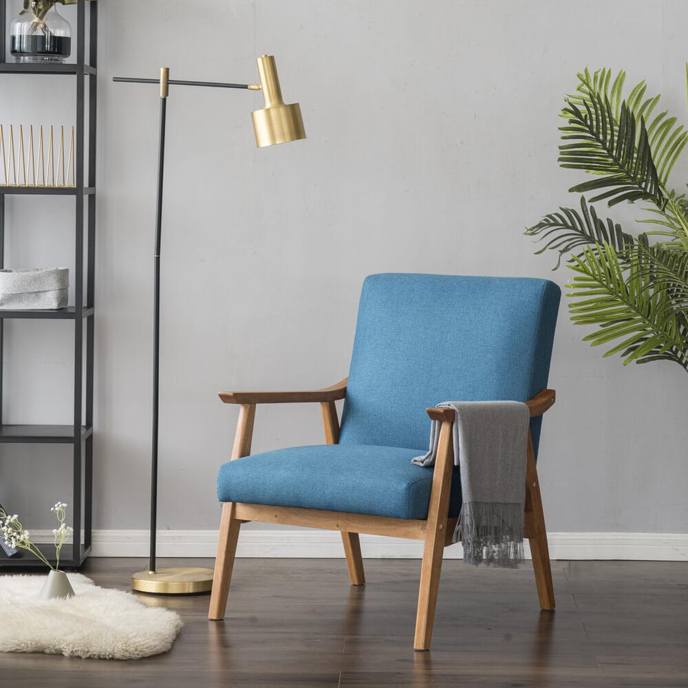 Mid-Century Modern Accent Armchair Solid Hardwood Upholstered Linen Lounge Chair, Navy Blue
