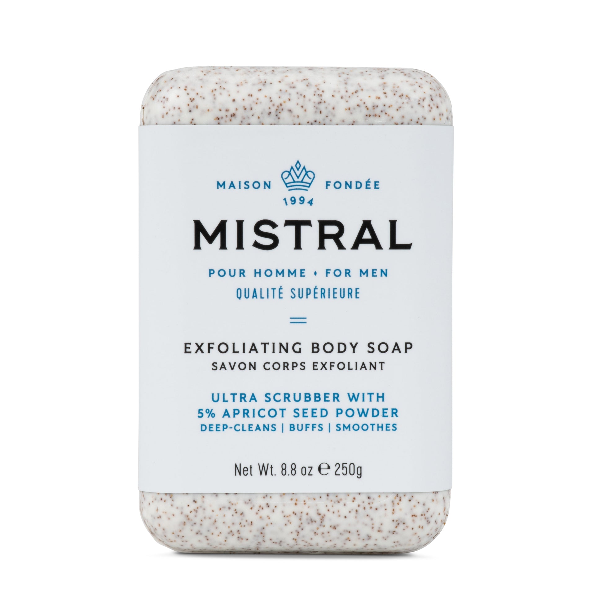 Mistral Men's Exfoliating French Bar Soap 8.8oz 250g - Ultra Scrubber with Apricot Seed