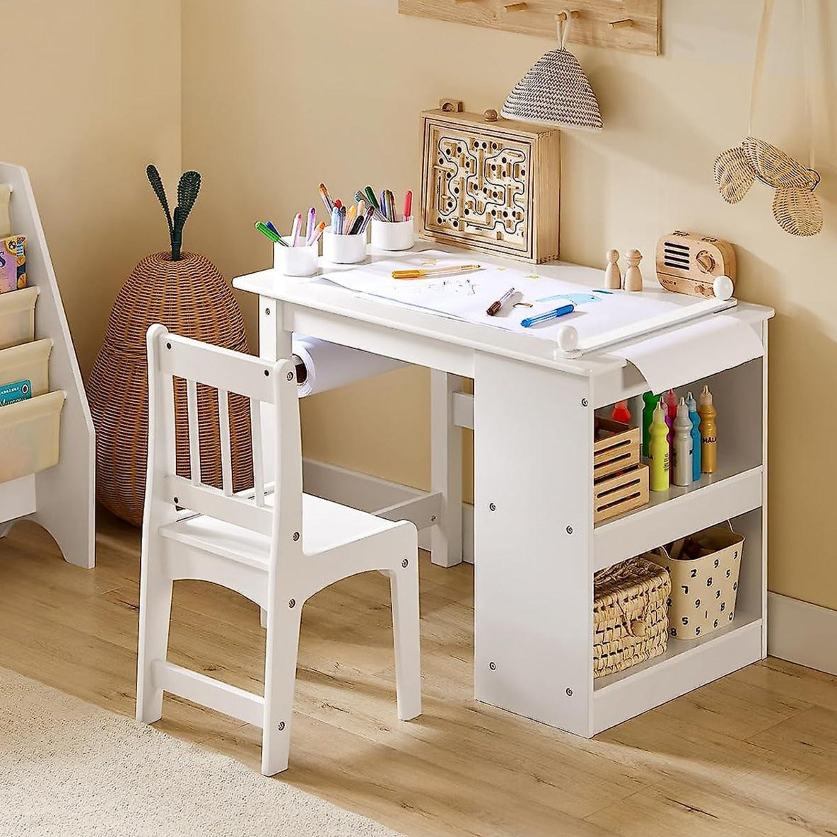 Montessori Space-Saving Children's Homework Desk | Paper Roll | Storage | White | Ergonomic Chair | 5-12 Years