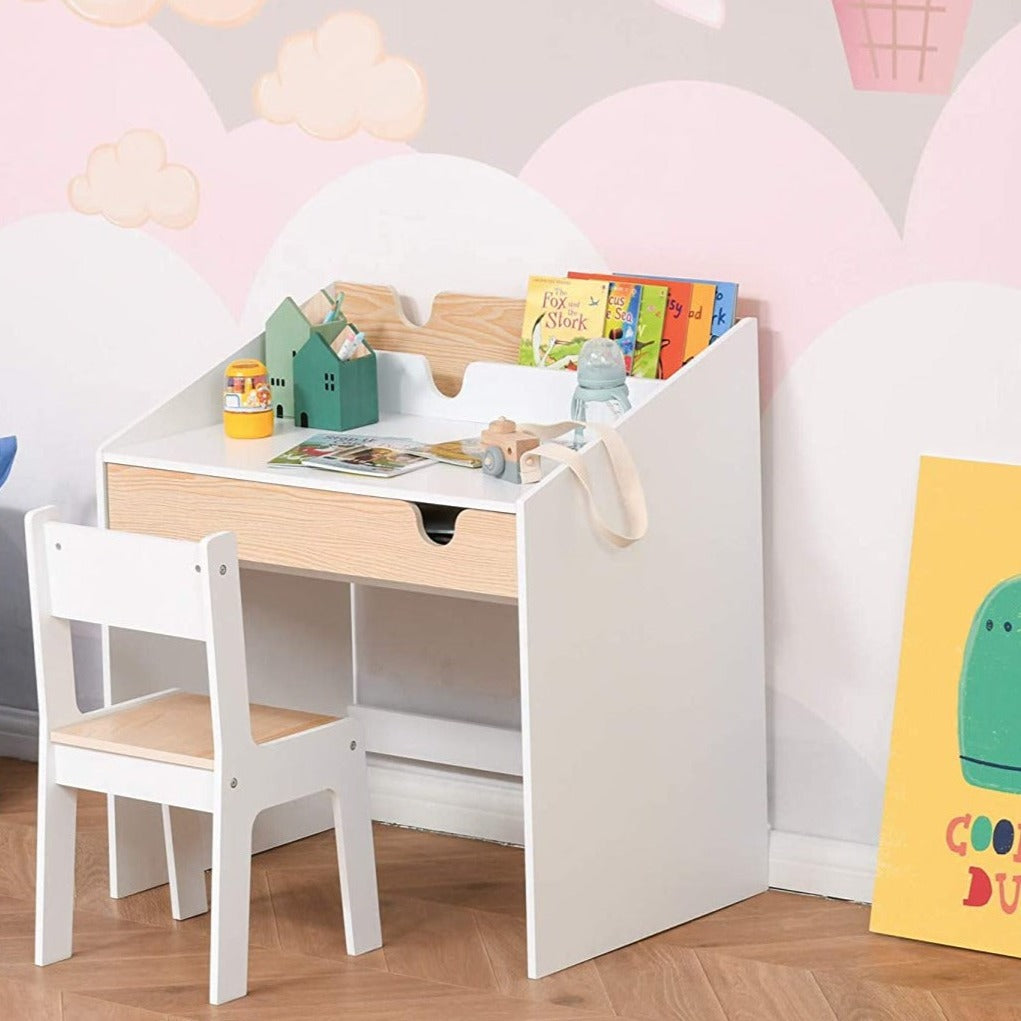 Montessori Children's Homework Desk | Bookshelf | Storage & Chair | Natural & White | 3-8 Years
