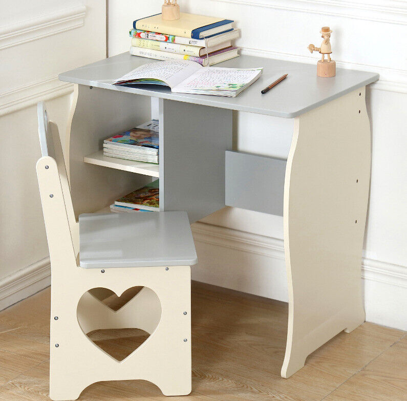 Montessori Sweetheart Children's Homework Desk | Bookshelf | Storage & Stool | Cream & Grey | 3-10 Years