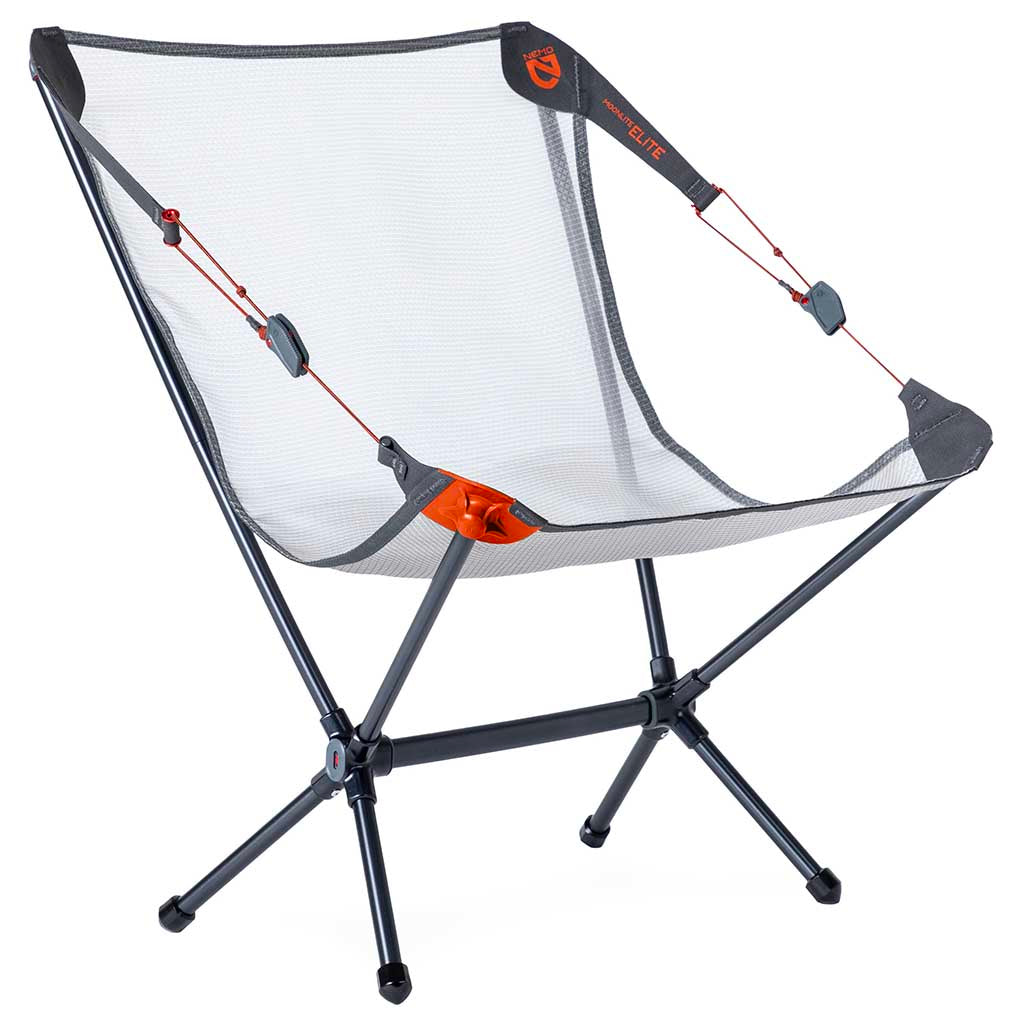 Lots of camp chairs claim to be suitable for backpacking trips – and then you look at the weight and size specs and you realise they're absolutely not. But here's one that REALLY is. The NEMO Moonlite Elite tips the scales at just 526g and packs down to the length of a school ruler. They've been incredibly crafty about pruning down the weight, replacing the suspension straps on the standard Moonlite with 2mm cordage made from an ultra-strong HTP/Dyneema blend. The hubs for the chair legs are super-light forged 6061 series aluminium, and even the corner mounts have been skeletonised to shave off every last gram. All of which makes it more surprising how comfortable the Moonlite Elite is – with a clever reclining system for the ultimate in ultralight decadence. One of our favourite touches is the tool roll-style carry case, which includes corner sleeves so you can use it as a platform on sandy ground