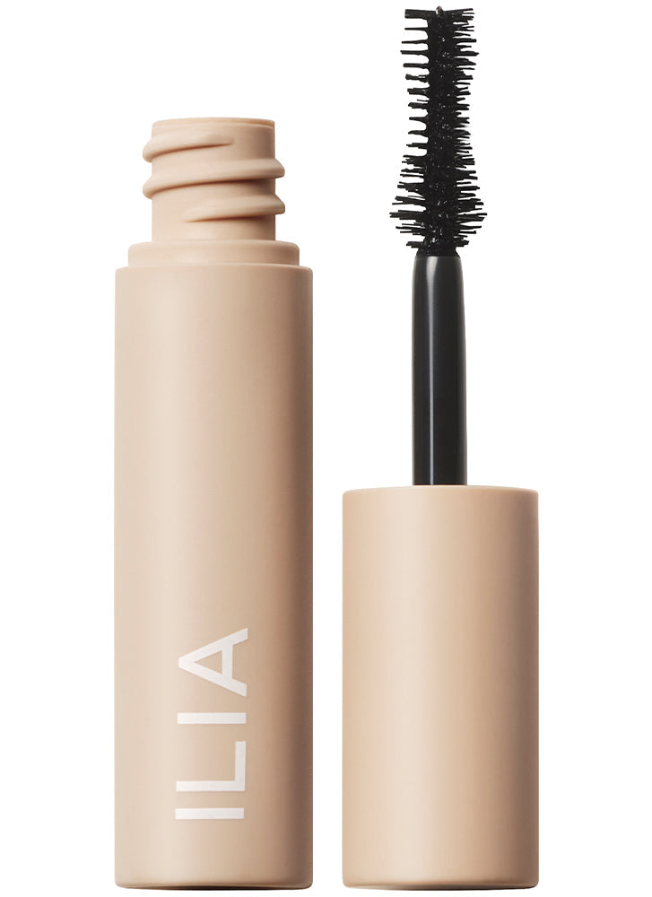 Nestle the ILIA Beauty Fullest Volumizing Mascara brush into the base of lashes and glide upwards, wiggling from side to side. Apply several coats for more volume and dimension. Use the tip of the brush to separate and define hard-to-reach lashes.