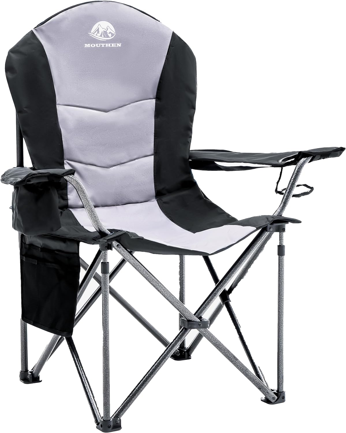 Oversized Camping Chair,Fully Padded Camp Chair Outdoor Heavy Duty Folding Lawn Chair with Cooler Bag,Head and Side Pocket -Support 400 lbs (1, Black&Grey)