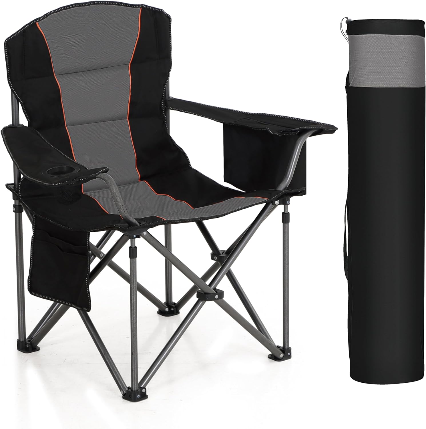 Oversized Portable Camping Folding Chair, Heavy Duty Foldable Outdoor Chair, Camp Chair with Cup Holder and Cooler Bag Support 450 LBS, Black