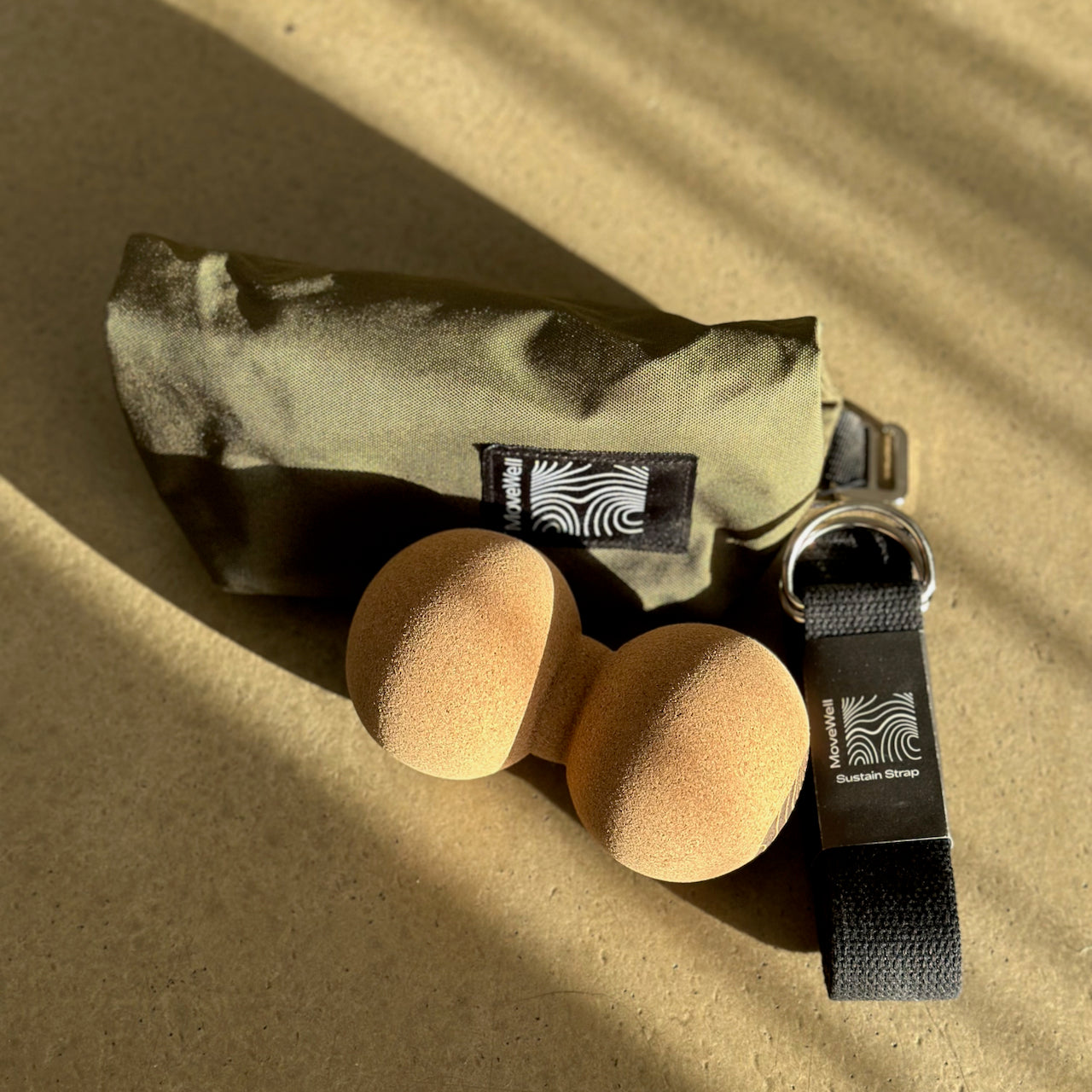 The MoveWell Essentials Pack is a minimalist, travel-ready pack for movement preparation and active recovery, anywhere!