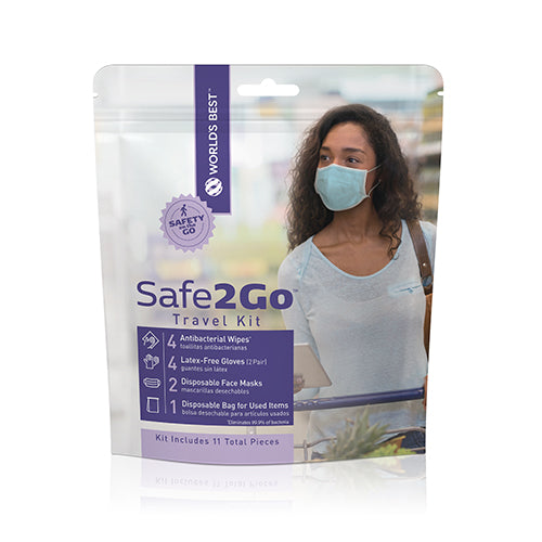 The Safe2Go Travel kit allows travelers to fly with confidence, ease and comfort, knowing that they have personal protection essentials that they want and need. Each travel kit includes 11 total pieces.
