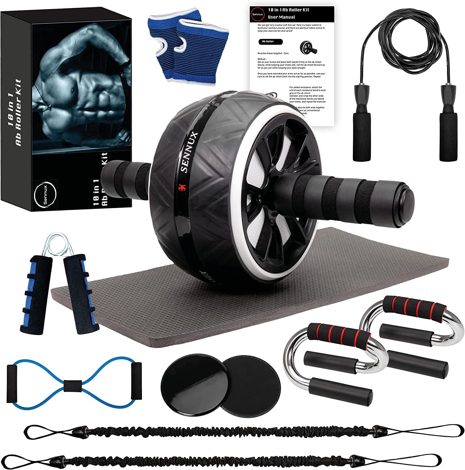 Sennux 10 in 1 Abdominal Roller Set for Core/Upper Body/Legs, Gym Equipment for Home Exercise, Ab Roller Wheel and Ab Workout Equipment for Home Workouts