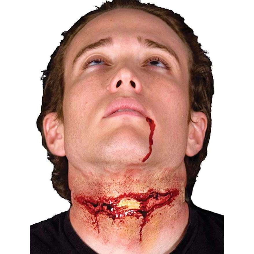 Add to your Halloween look with this classic Woochie Slashed Trachea Prosthetic appliance. Adhere with Spirit Gum (sold separately) and use your favorite blood or makeup to create the desired look. Remove carefully and clean with soap and water for reusability.
