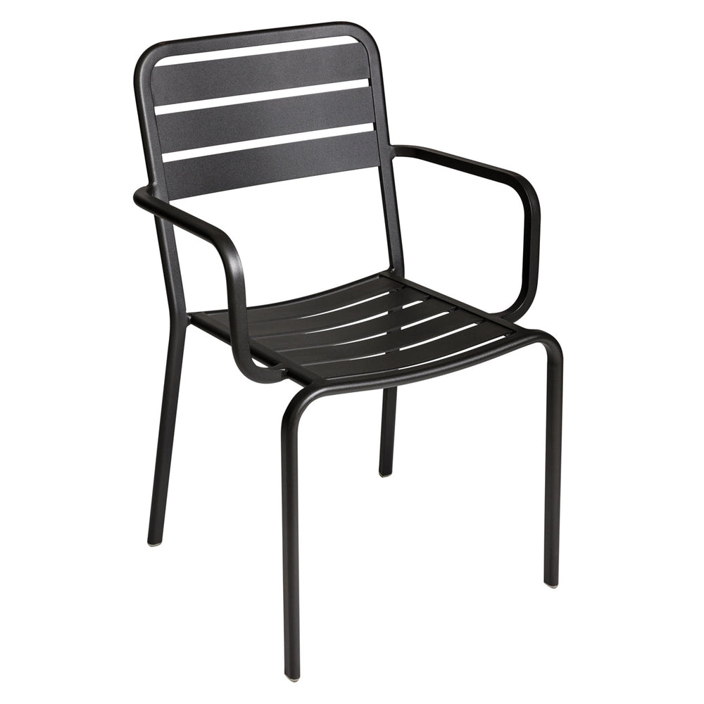 This outdoor Vista armchair is designed to last and look great in your restaurant. This armchair fits in nicely for restaurants desiring an industrial design. It is made of aluminum. There is a wide range of colors for this armchair, including black or earth. This product is backed by our customer satisfaction return policy and our best price guarantee.