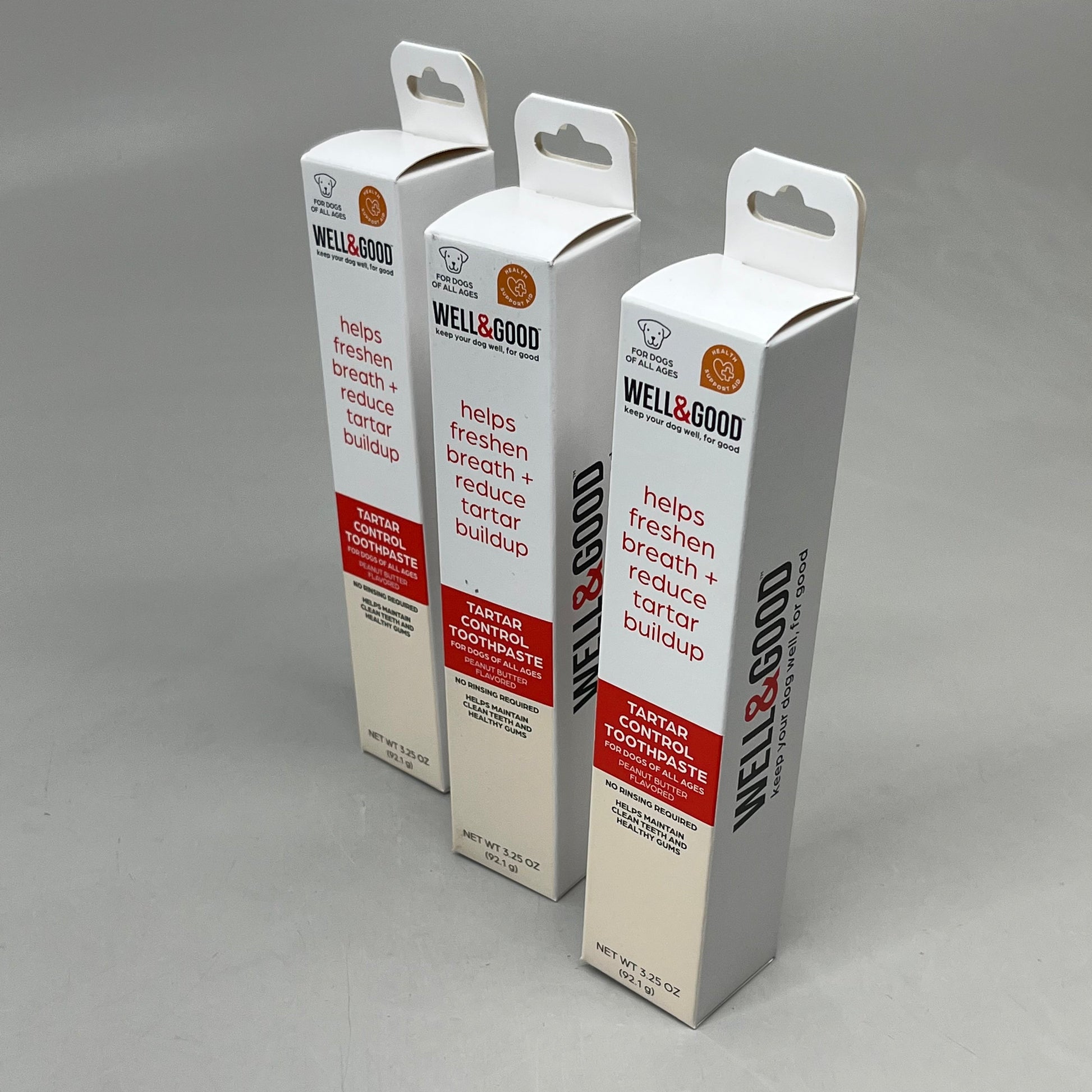 WELL&GOOD (3-PACK!) Tartar Control Toothpaste For Dogs Peanut Butter 3.25 oz White FFP22078